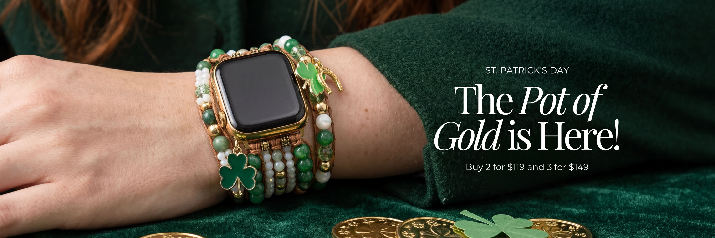 Jeder Tag bietet die Möglichkeit, das zu wählen, was mit dir in Einklang steht. Feiere den St. Patrick’s Day, indem du unsere Neuankünfte-Kollektion entdeckst. Über den Stil hinaus ist jedes Uhrenarmband sorgfältig aus langlebigen Materialien und bedeutungsvollen Steinen gefertigt, um dich auf deiner Reise zu begleiten, wohin auch immer der Regenbogen führt. 🍀🌈